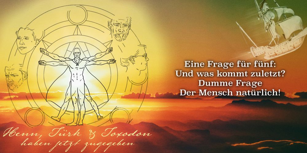 In his everyday life, Aki Henn (alright: Joachim Henn) works as a reciter and dramaturgist, and has a sophisticated interest in literature – HMMMMM! – particularly in that which seems written in between the lines – so, nothing earth-shattering in and of itself. However, when Captain Niederrhein comes calling to enlist his aid once again in the fight against ingenuousness, coarseness and lack of nuance – HUELP! – he pulls on his Hagenbuch cape with lightning-quickness and calls Supramallet Salome, Wizza Raissa and Camatta-Mondatta (together they form the legendary trio Toxodon – we must refrain from describing their individual superpowers in detail here for fear of blowing up the format – BANG! – suffice it to say they can all be traced back to lab accidents). In cases of extraordinary urgence he even sends an appeal via the most cutting-edge ShortMessagesServices to Speedy Turky, the wiliest trumpet player from Neukirchen-Vluyn to Hinsbeck, who naturally shows up toot-suite – TWEEEEP! Once assembled, the troupe can truly realise their full potential: Lower-Rhinish sound battens – made of spoken word and music – banishing all that is dim-witted, coarse and uncompassionate from the stupid here and now. Ditz Atrops blows the trumpet at full blast, Frida-on-Earth generates radical power-chord feedback, Hedwig (Marianne, actually) weaves idiophonic rugs of late and the circular-breathing drummer who goes by a single name (like Madonna) thrashes anything within arm's reach in the most complicated way imaginable. At least that is what Hagenbuch admitted, who also admitted that his friend Aki admitted that he sings with these mad individuals every now and then too…