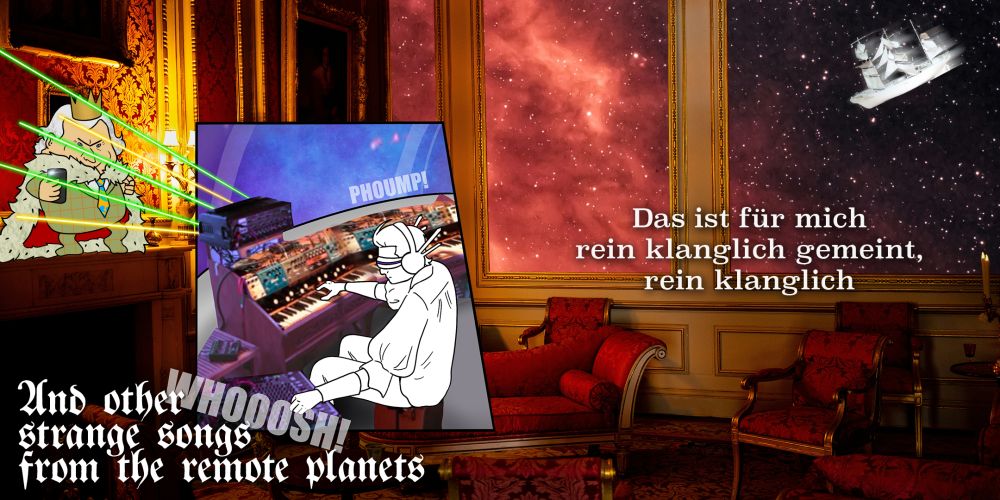 Cyborgorgel oder Lasermonium? Der größenwahnsinnige (aber in Wirksamkeit total gutmütige) Graf V. v. Döring rast - WHOOOSH! mit seinem unberechenbar und ständig mutierenden Instrumentencockpit von Kirchturmspitze zu Kirchtumspitze, immer den marodierenden Reichsbürgerklonen auf der Spur. Wenn er sie zwischen dichten Sinuswellen und silbernationalem Shine-Schleim gefunden hat, wachsen Klinkenkabel zu fleischfressenden Sehnen, blähen Kontaktmikrophone den Sound der Bälge gegen Unendlich und schwinden Hölzer rückwärtsleitend bis zum Big-Gap - PHOUMP! - , sodass alle Gedanken der dummen Klowns zu einer klebrigen selbstvergiftenden schwül-konsistenten braunen Masse verschmelzen, die sich in den Klängen Graf Dörings in ihre Moleküle zersetzen. Bis dahin: …nix Berauschendes. Doch HARHAR! vor der Moerser Stadtkirche steht Graf Dörings Erzrivale Heinrich XIII. Prinz Reuß, der die finale Todeswaffe für jegliche Demokratie zückt: sein neues Smartphone! „Ich ließ meine Seele auf der Orgelbank liegen!“ droht der böse Prinz. Doch der Graf lacht nur: „Wenn Du Spaß dran hast, warum dann nicht?“ Dann drückt Dörings dicke Drohnenorgel dem Diktator direkt dessen dreiste Dummheit demokratisch durch den digitalen Daumenfernseher… Diagnose: die dotale Destruktion! DOOM!