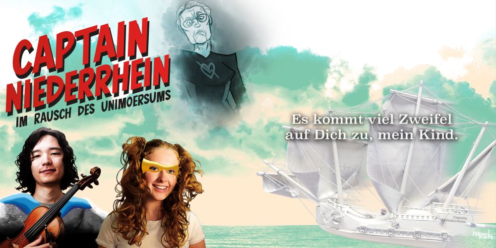 In einem epischen Auftritt voller Wagemut und Magie werden sie die Dunkelheit herausfordern, herumwirbeln, hineinziehen und wieder rauskicken! Wird die Liga der kreativen Kids mithilfe von INprogRES und der Garde Républicain das Unimoersum erstrahlen lassen? Captain Niederrhein prophezeit: „Es kommt viel Zweifel auf Dich zu, mein Kind.“ Dann lächelt er zuversichtlich und radelt auf seinem weißen Pedelec wieder nach Dinslaken… ÄCHZ!