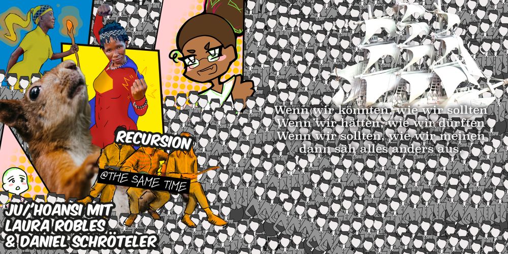 Durch die Kraft ihrer Ahnen und Vorfahren sind die Ju’Hoansi bis heute unverwundbar und immun gegen Diskriminierung und die digitale Inquisition. Manchmal rufen ihre Freunde Laura und Danny, die jetzt beide in Berlin leben, dann Sari, Fransina, Casa, Kaziko, Emile, N!aica, Johannes, Albert und Khaum zuhilfe, wenn deutsche Botschaftsmitarbeiterinnen (wir nennen sie hier mal: Die Grauen Frauen) mal wieder alles daran setzen, kulturelle Projekte unter Beteiligung von Musikerinnen aus Ländern des afrikanischen Kontinents (ok, manchmal auch Indien und so…) zu verhindern, weil Die Grauen Frauen felsenfest davon überzeugt zu sein scheinen, dass alle Menschen aus dem globalen Süden es erstrebenswert finden, so zu leben, wie es der größte Teil von uns hier tut… „Wat ne Quatsch!“ ruft der alte Mann aus seinem Allrad-SUV (mit Dachzelt), der eine Zeit lang bei den San gelebt hat und mit ihnen auf seinem weißen Katamaran die westliche Kalahari durchquert hat den Die Grauen Frauen zu. Und reicht folgenden Visumsantrag ein: